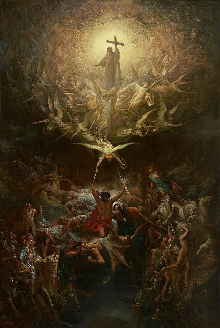 Đến một ngày, khi cuộc chiến giữa Thiên đàng và Địa ngục nổ ra, ba vị Thánh này không một ai chấp nhận tham gia vào nó. Vì họ nghĩ đây là một cuộc chiến tranh vô nghĩa của những con quỷ đến từ địa ngục, và nếu tất cả chỉ là những cuộc xô xát, giết chóc tàn nhẫn, nó sẽ là mối nguy hoại cho toàn thể loài người. Vì vậy họ quyết định rời khỏi Thiên Đàng để xuống hạ giới bảo vệ các sinh linh, họ gieo mình xuống đất, hoà làm một với địa giới để cùng ước nguyện cho chúng sinh một cuộc sống tốt đẹp hơn, tránh xa những cuộc chiến không đáng có. Ba người họ chọn cho riêng mình những vùng đất khác nhau, ba nơi mà họ chọn để ngự trị cho bản thân được gọi là đất Thánh. Và vì quyết định hoà vào đất mẹ, mỗi người bọn họ lại phải tự sáng tạo ra một giống loài khác để có thể tiếp tục nhiệm vụ vẫn còn dang dở của mình. Tam Tộc từ đó ra đời.