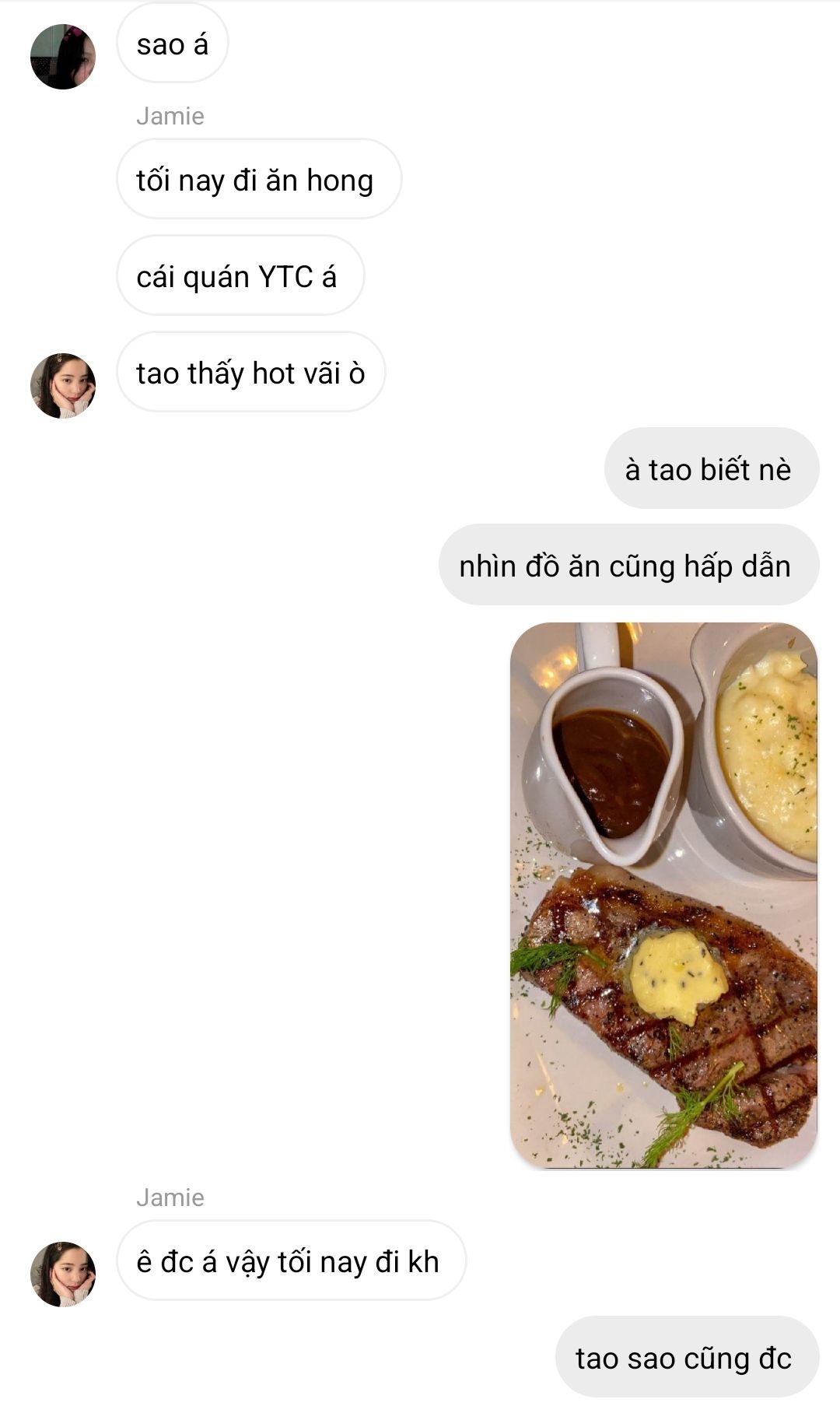 Jamie : rồi mày có đi với ổng kh hay mày đi với tụi tao