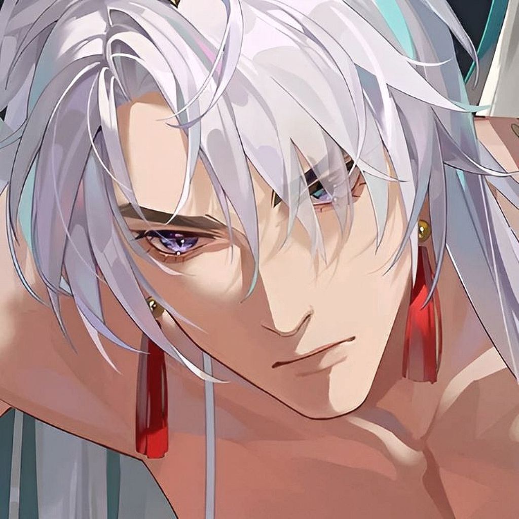 Lớp tóc bạc che mờ đi đôi mắt xanh tím của y. Và cũng do trong đêm nên ta không nhìn rõ được đôi mắt ấy hiện giờ ra sao.