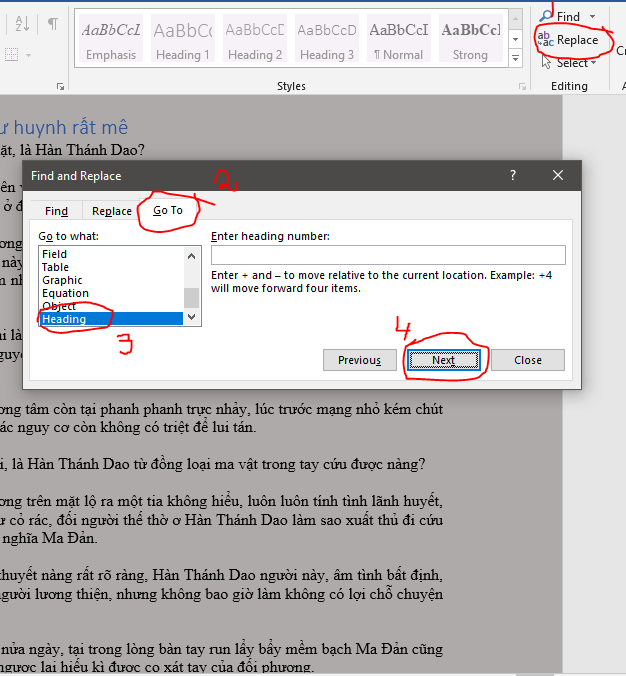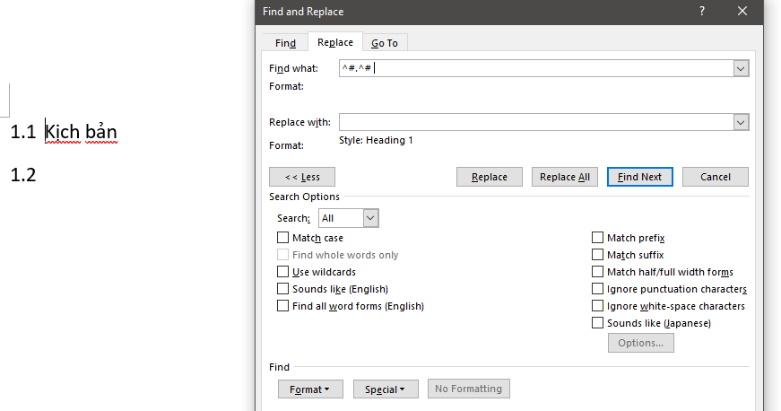 7 - Search and replace để có được cái Table of Content (mục lục) và headings