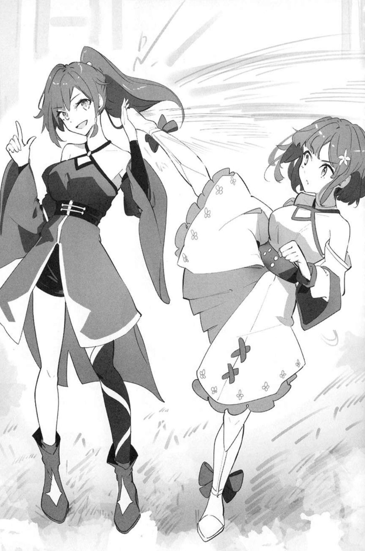 Tôi sẽ cảm thấy không tốt nếu xen vào cuộc trò chuyện của hai cô gái, nên tôi quyết định vung kiếm ra xa hơn một chút.