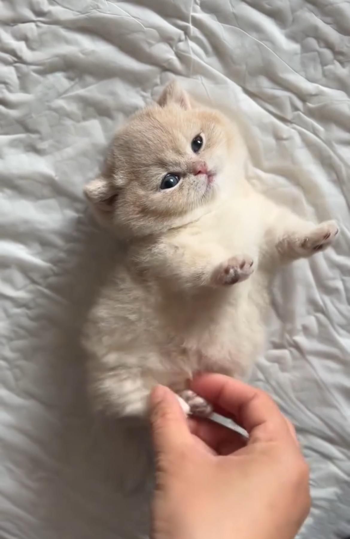 Tiên phá lên cười khẽ, đưa tay xoa đầu bé mèo nhỏ.