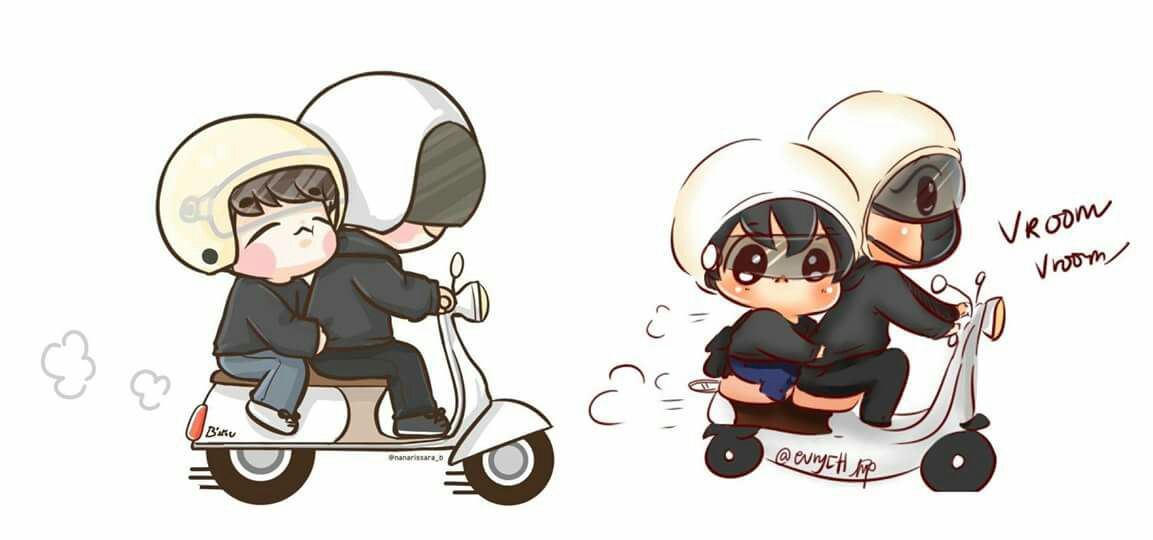 Thế rồi cái thân hình lớn ấy lái một vèo nhanh thiệt là nhanh luôn. Vì nhanh quá nên thân hình be bé mới lo sợ mà hai bàn tay nhỏ nhắn quàng qua eo của anh lớn ôm chặt lấy. (Au: >/////<)