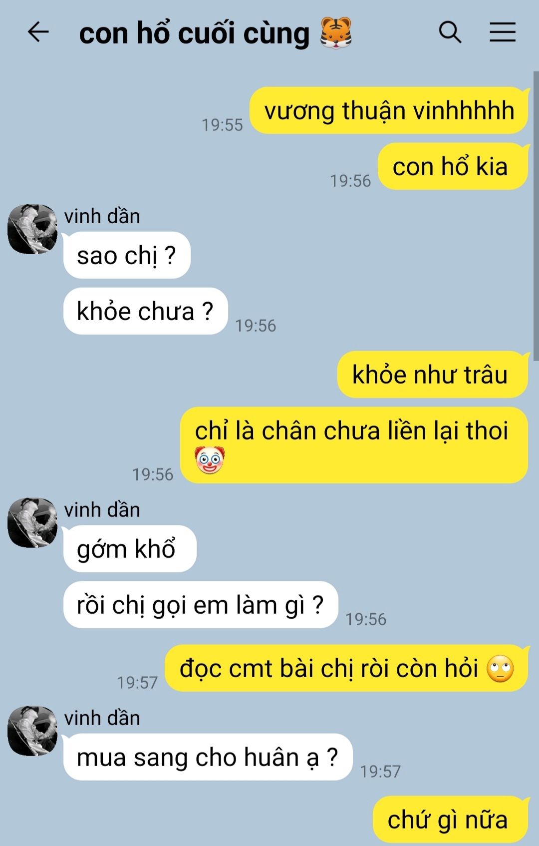 Huân đứng đực ra đấy nhìn anh, Thuận Vinh cũng không biết làm sao nên đành lên tiếng trước