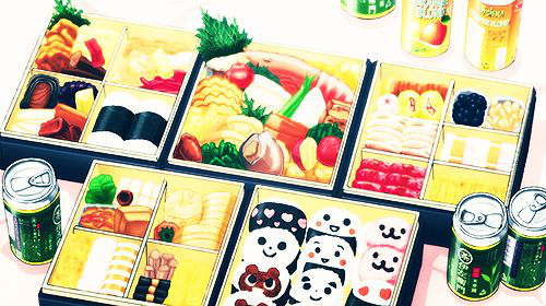 Hiori chỉ những phần cơm hộp được các người hầu cầm trên tay đứng ở đó không xa.
