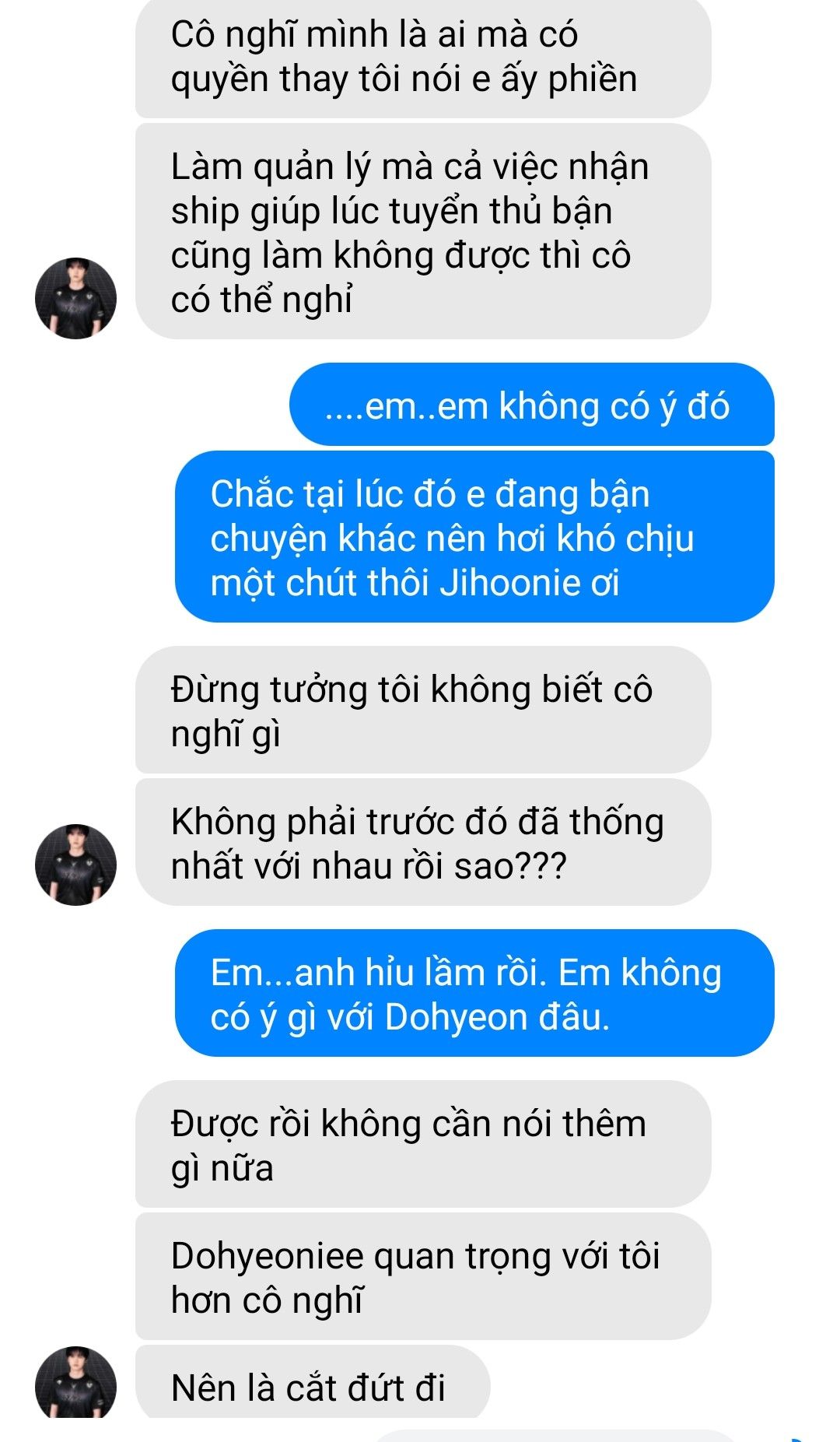 Dohyeon -> quản lý đội Jihoon