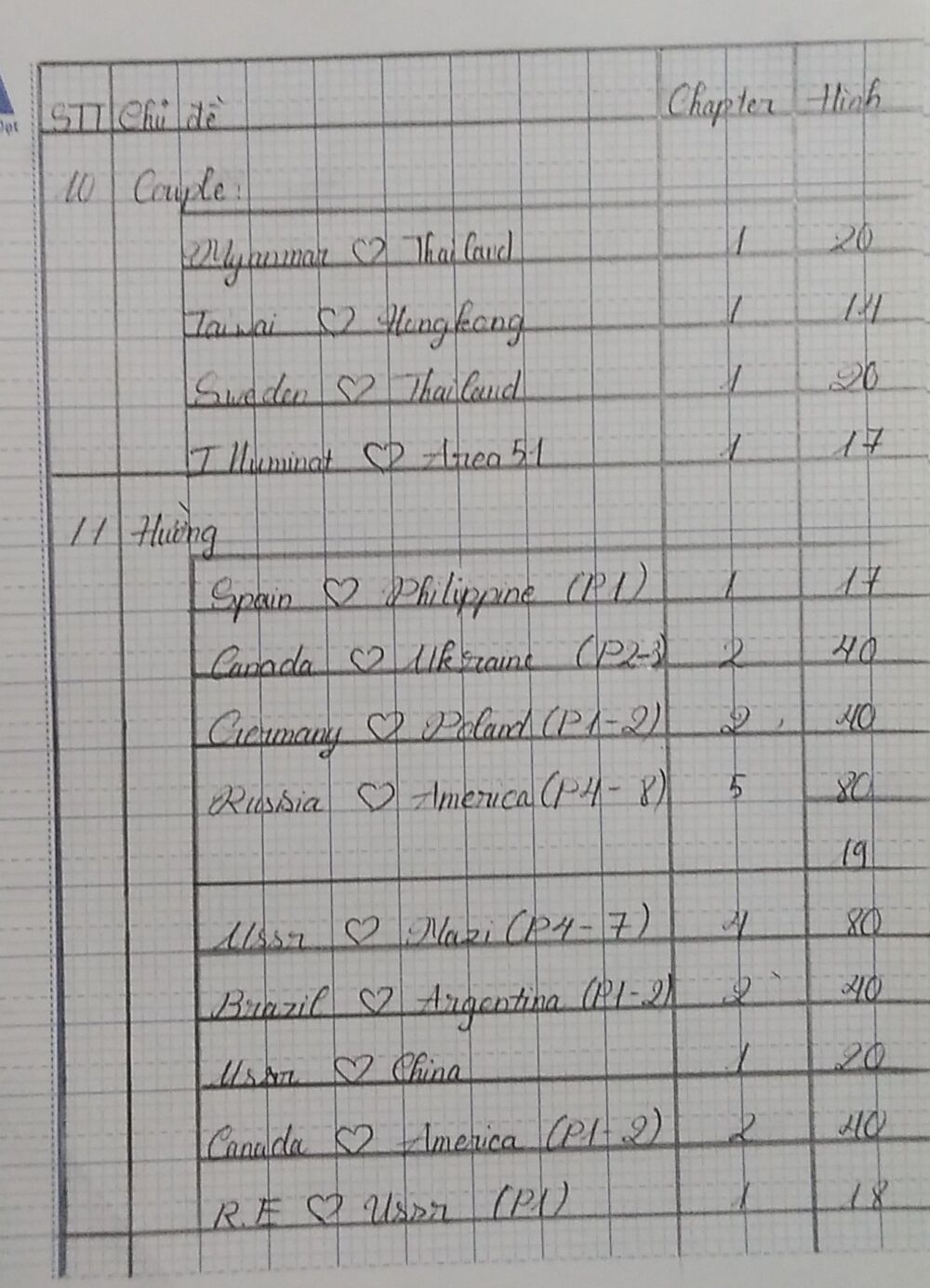 Ừ hé... gửi mấy bác cái bảng liệt kê trước để khỏi bất ngờ....