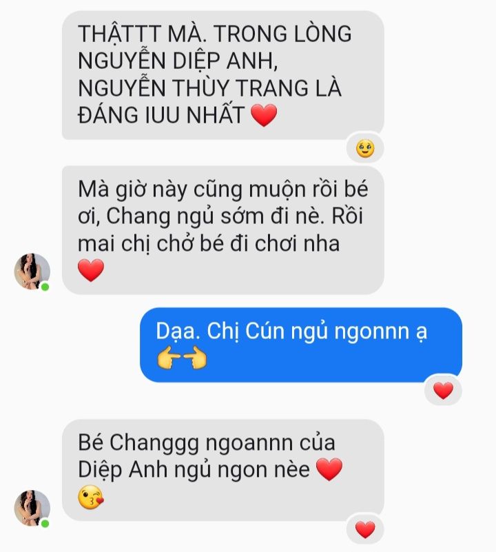 Người dùng Nguyen Diep Anh to nguoi dùng Thuy Trang Nguyen :))