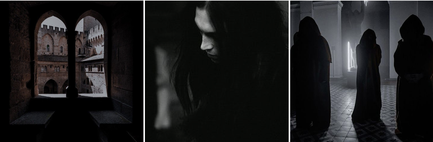 He assesses how her shoulders loosen in relief, her smile mellowing as she sights his ornate robes, and the rosary around his slender neck, as if the sign of his faith was a definitive reason to trust. As if something within himself wasn't divinely wrong, the lack of normalcy that shrouded him wasn't anything but frightening. From his sable hair to the lack of white in his eyes, that flickered around her face, intrinsically seeking out the faintest murmurs of life beneath dark skin. Near fanatic, bordering on fanatic. Instinctively, he swallows venom.
