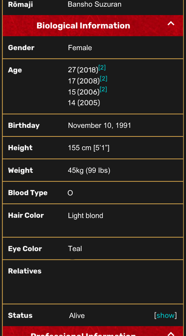 - Không quá thích nốt ruồi lệ dưới mắt trái vì hay bị đám đàn ông trêu ghẹo, Suzu không hiểu vì sao, đàn ông luôn là sinh vật khó hiểu.