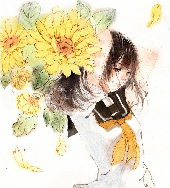 Anime girl với hoa