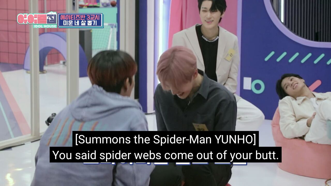 Jongho: Anh nói là mạng nhện sẽ chui ra từ mông anh.
