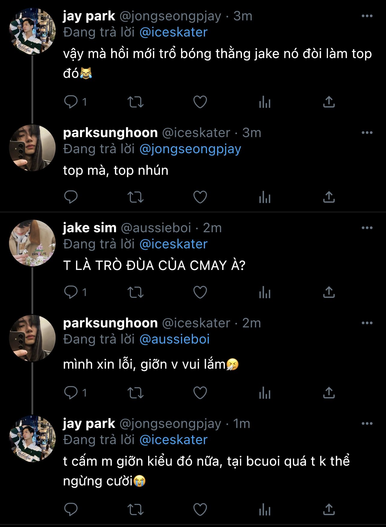 nụ cười trên môi jungwon tắt phụt. cậu nhóc nghiến răng, gắt nhẹ rồi thì thầm với anh trai: