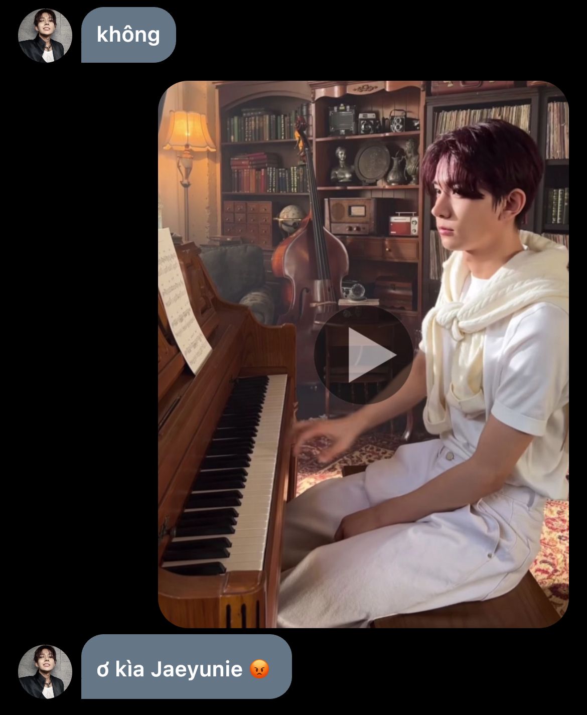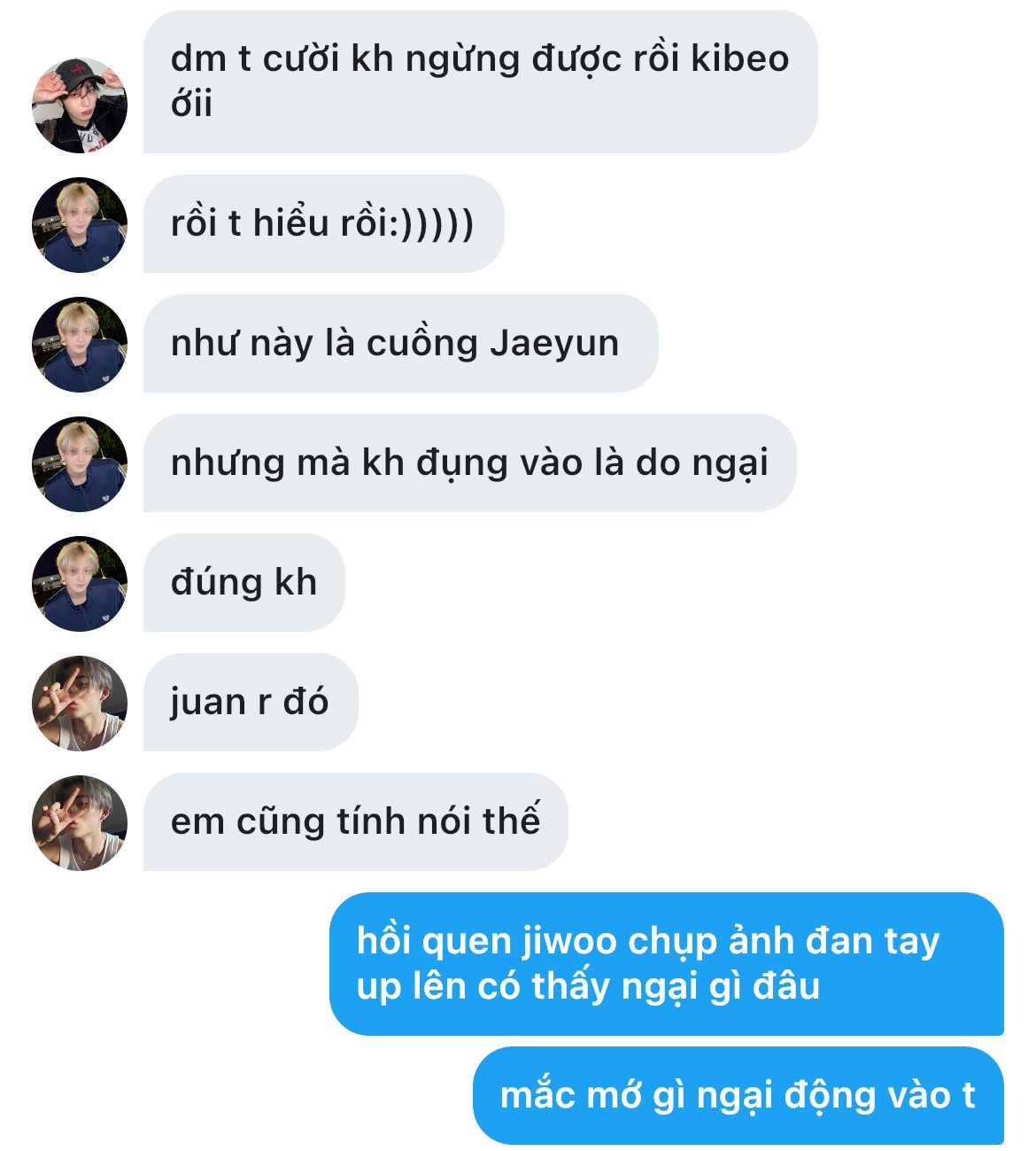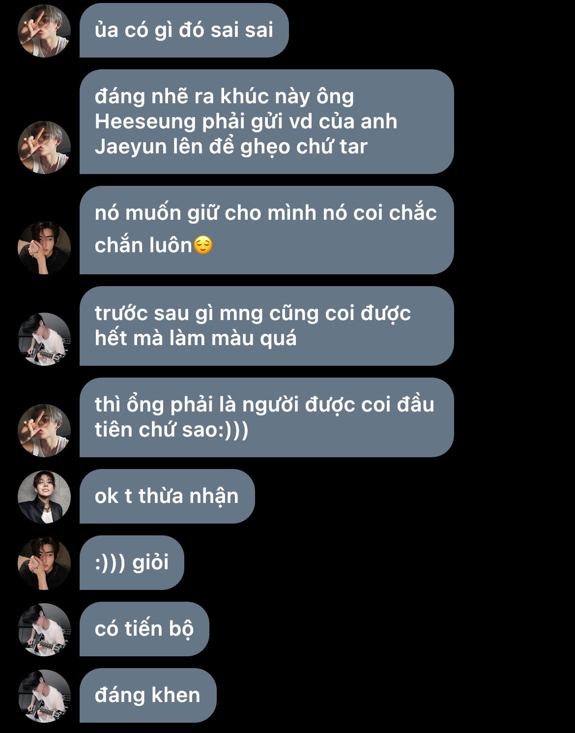 "Jaeyunie nhắn với ai mà lâu thế?" _ hắn từ từ chòm qua nhìn tin nhắn trong điện thoại em, nhưng chưa kịp nhìn rõ chữ đầu là gì em đã vội úp máy xuống ghế, quay sang gay gắt với hắn: "Đừng có tự tiện!"