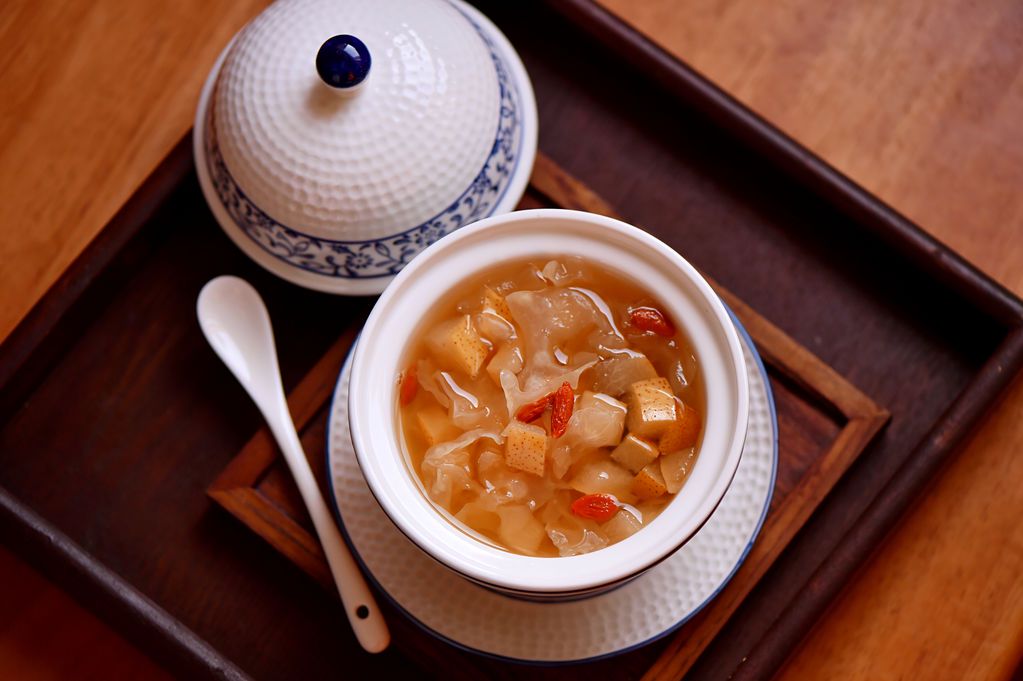 Về phần tráng miệng, Mễ Lộ làm chè lê nấu nấm tuyết.