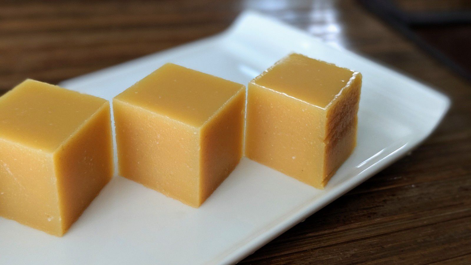 Hiện giờ mới vào lập thu, tuy rằng đã bỏ lỡ mùa đậu hòa lan vàng ăn ngon nhất, nhưng vẫn có thể ăn được. Hoa quế đã nở, Mễ Lộ trộn đường trắng, hoa quế vào trong đậu vàng, hoa quế thơm ngọt, có phong vị đặc biệt của mùa thu. Sau khi đông lại, cắt thành khối khoảng 2 tấc, dày khoảng nửa tấc, bỏ vào hộp giấy, mỗi phần cơm được hai khối, phá lệ tinh xảo.