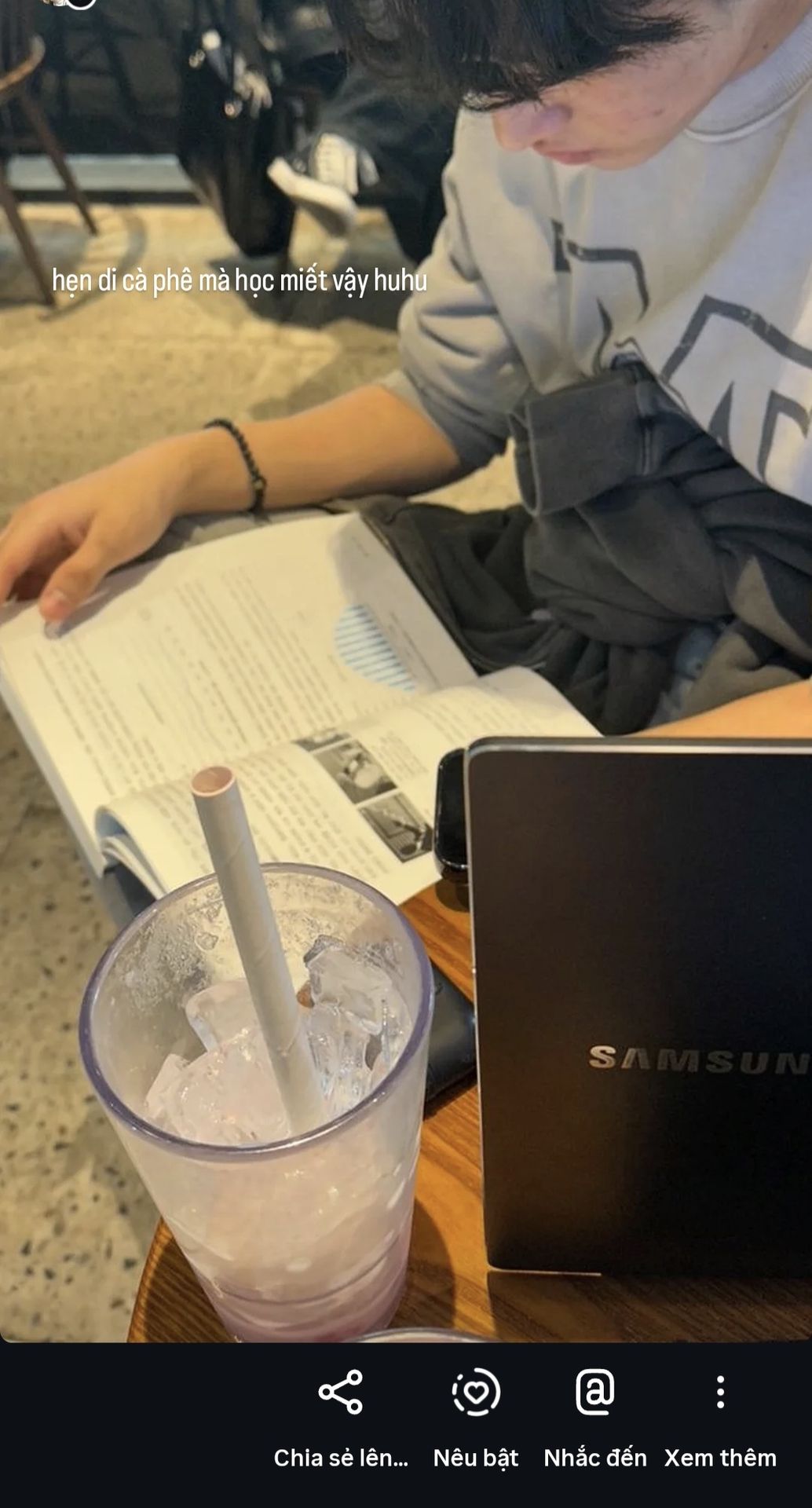 :Đi cà phê mà bạn í học miết😭😭