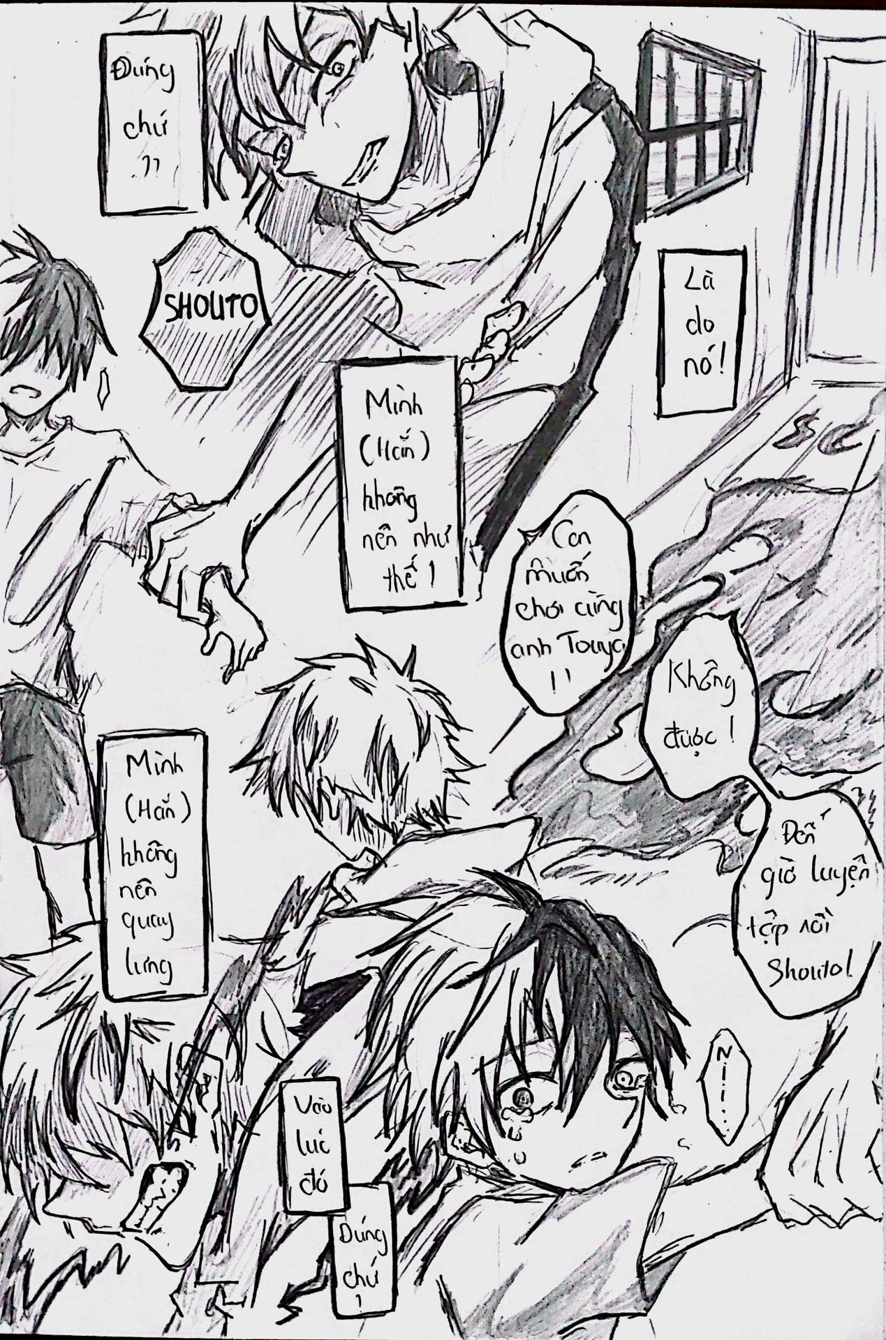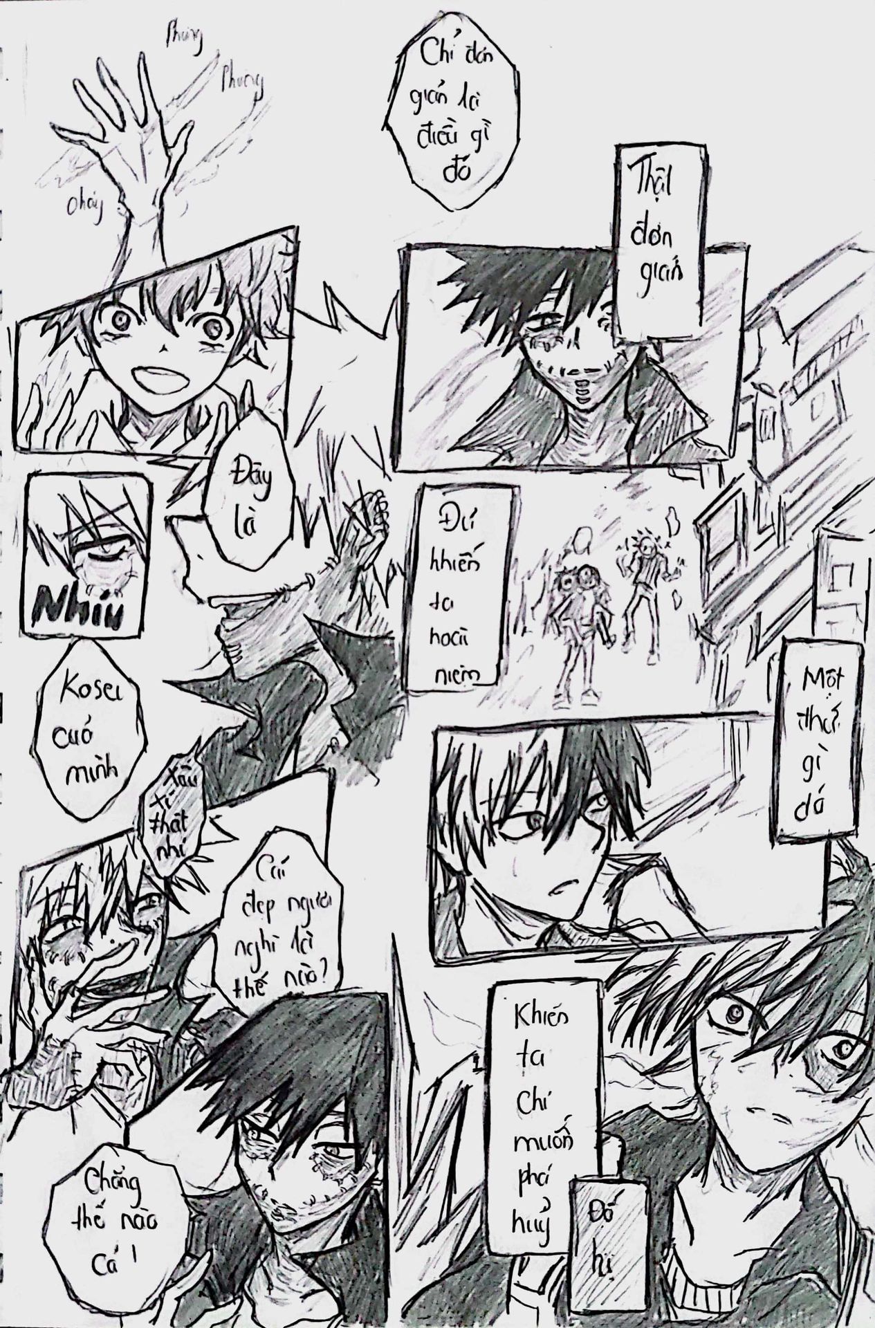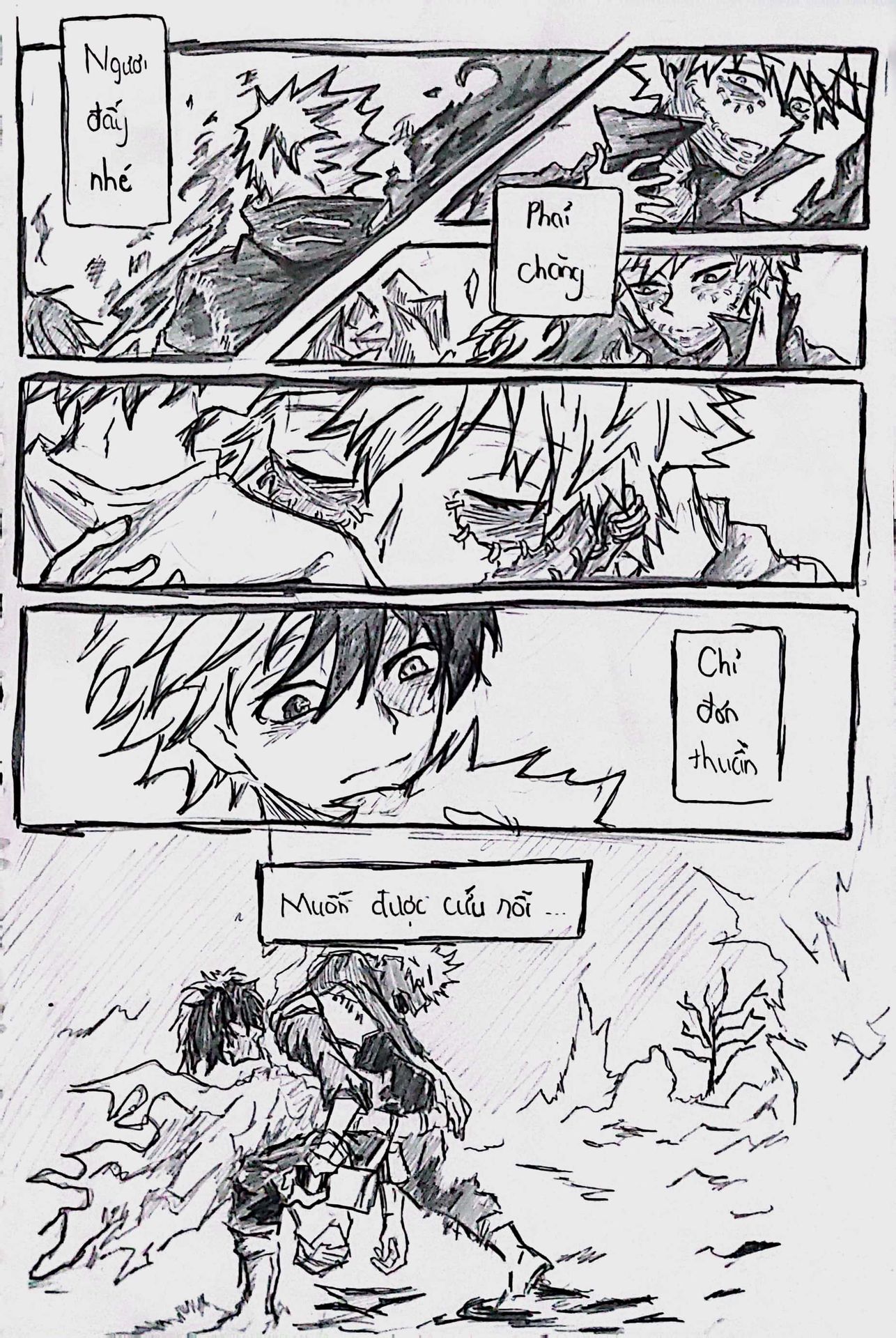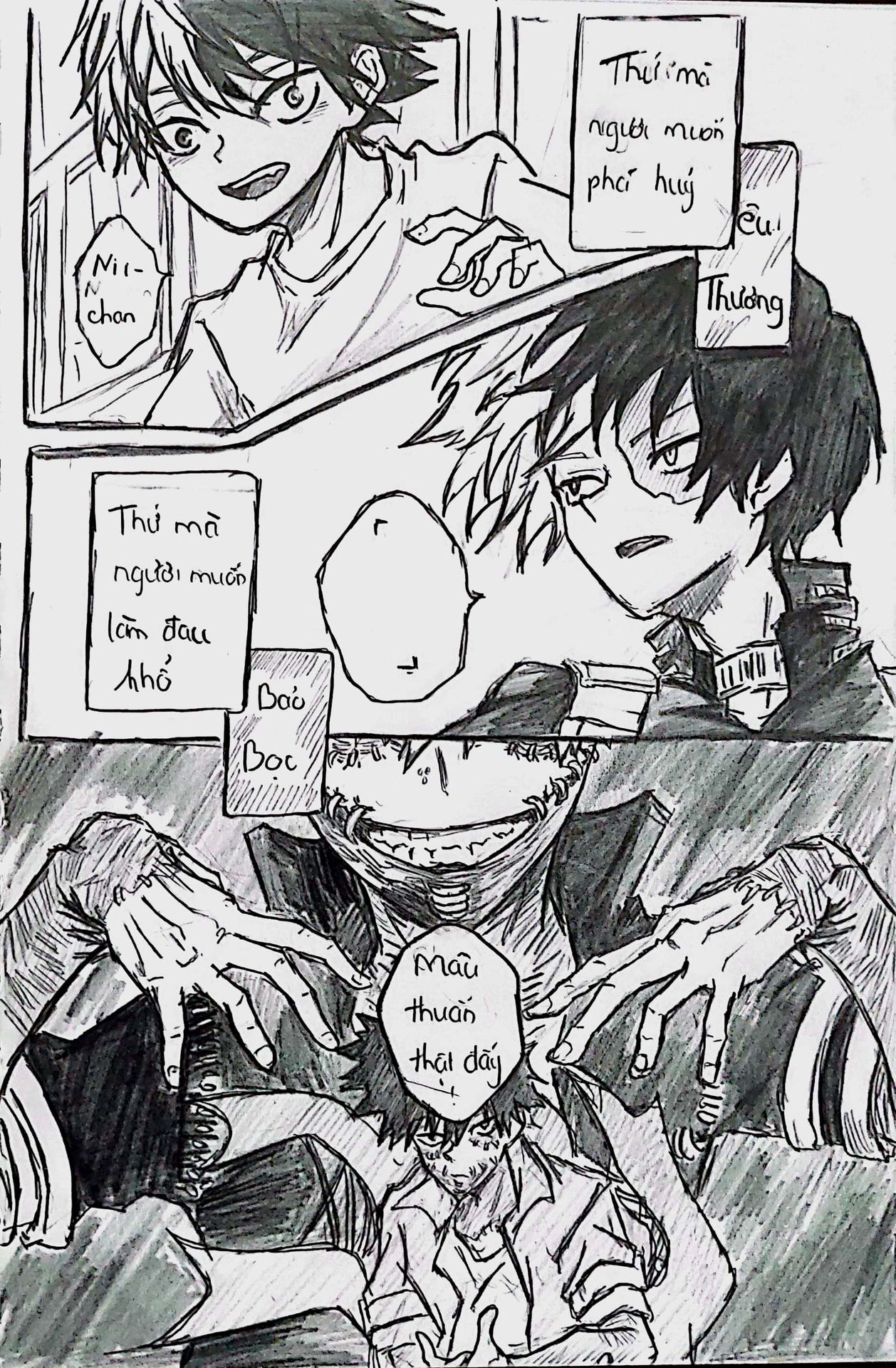 Và ở đây, trong câu chuyện này, mình xin phép không bàn về nội dung của nó vì mình thích những suy nghĩ của độc giả khi đọc nó. Nhưng với mình, chiếc Short-dou này không mang một nội dung thống nhất, vì mình vẽ khá ngẫu hứng, kiểu thích gì thì vẽ nấy vào. Đem tất cả suy nghĩ, cảm xúc và lời văn dồn hết tất thảy vào các trang giấy và nét vẽ nên khó mà có thể khái quát được.