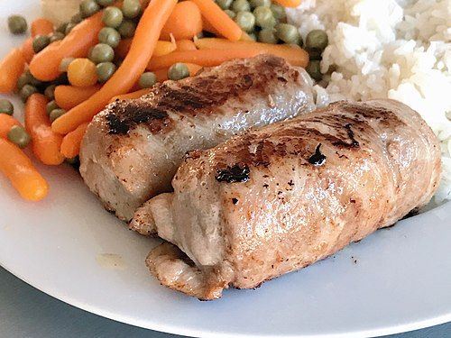 Slavink (Thịt xay nửa rưỡi) gồm có:nửa thịt bò, nửa thịt lợn, thịt xông khói, bơ hoặc dầu thực vật.