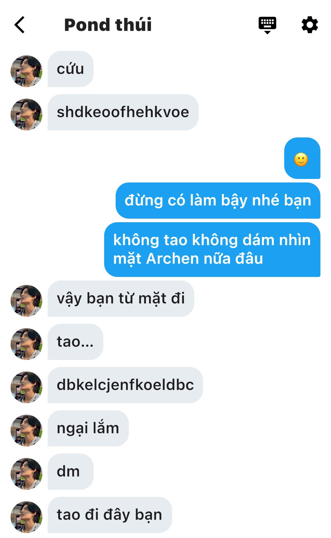 "À không phải...người quen á. Người quen thôi à, nãy anh có gặp một chút tí xíu..."