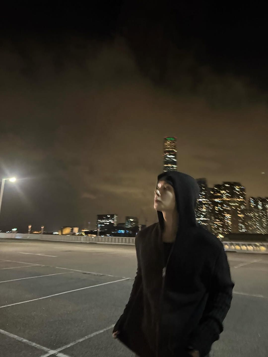 Jeonghan quay sang nhìn anh, cậu bước lại gần cửa sổ và cúi người xuống.