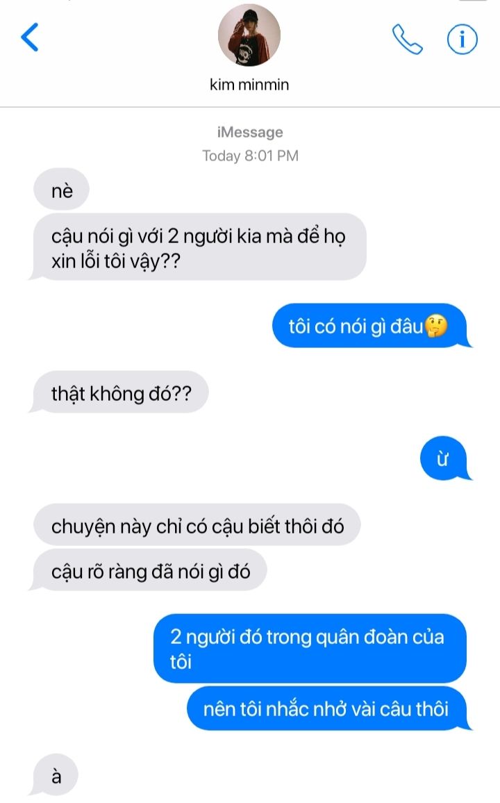 - thằng nào ném? - jimin kéo tay minjeong ngồi xuống. nhà cô giàu mà, khối 12 đầy người phải nể jimin. cô lại còn là trưởng quân đoàn mix.