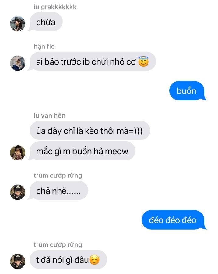 cả đám cười vang cả 1 góc sân trường, sau đó liền xách cặp chạy thục mạng vì yu jimin đang cầm viên gạch đuổi bọn họ.