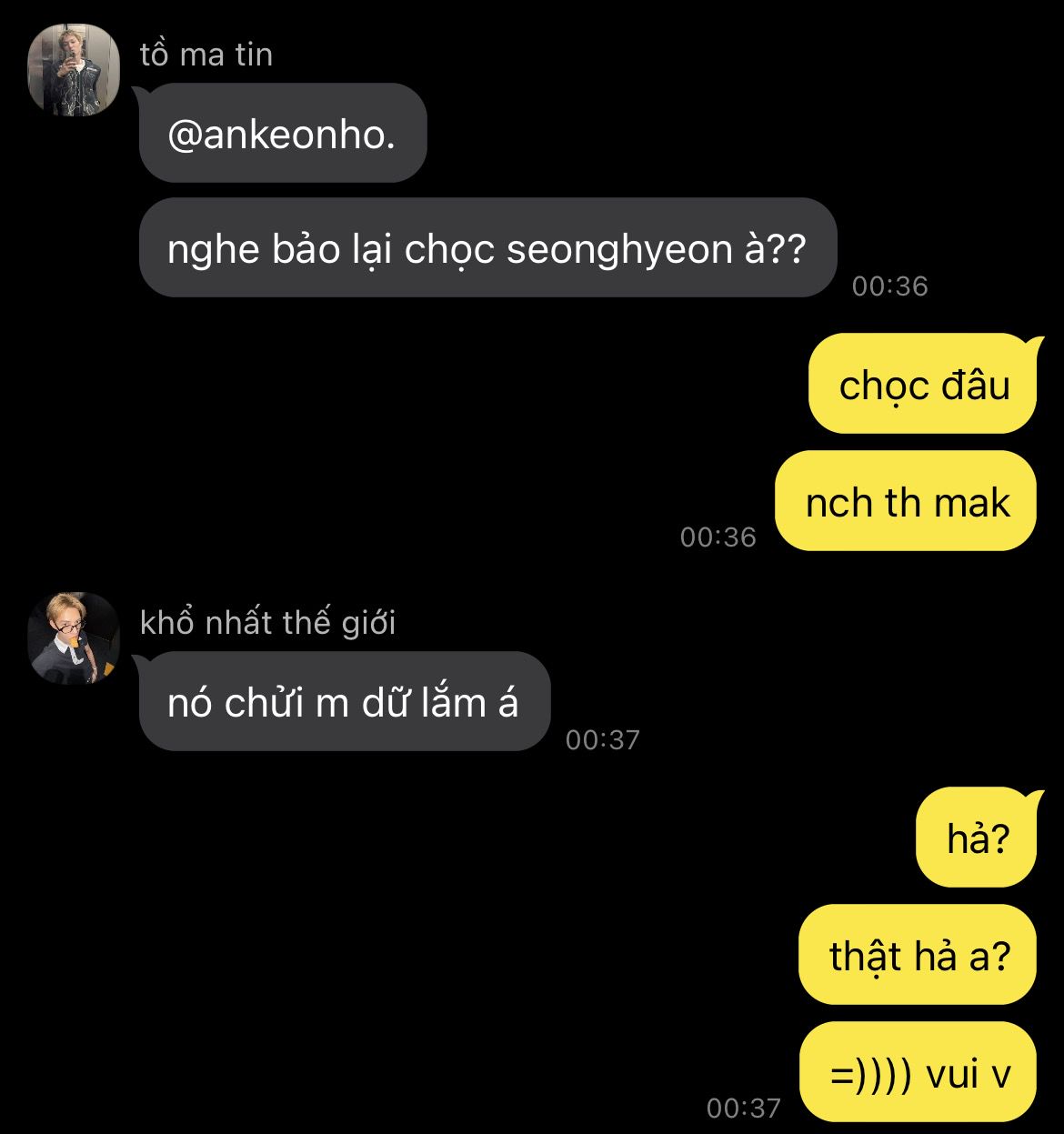 "vô duyên chỗ nào?" keonho hỏi