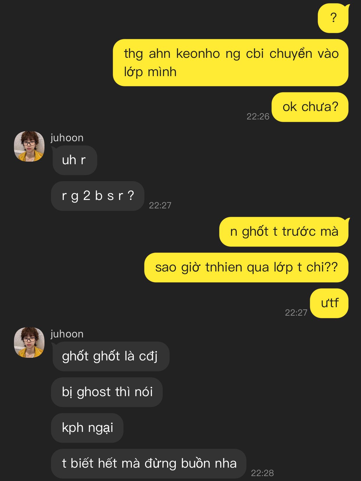 một ngày tồi tệ khi biết tên đáng ghét họ ahn - người mà trước đó đã ghost mình để đi theo nhỏ khác giờ lại chung lớp với mình, với trách nhiệm là lớp trưởng thì không thể nào dễ dàng tránh né tên đấy trong lớp được rồi, seonghyeon bất lực lắm bởi cậu chẳng muốn gặp lại tên đó chút nào