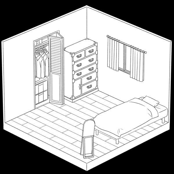 Cửa sổ và tủ quần áo mang phong cách Tây hơn nhưng vì Picrew không có nên lấy tạm minh họa.