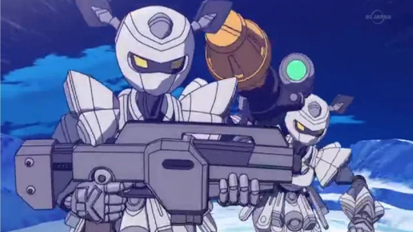 Ngay sau đó đôi mắt của LBX bí ẩn lóe sáng, nó liên tục di chuyển, chỉ vài giây ngắn ngủi đã biến mất khỏi tầm mắt của Eruda. Anh ta hoảng loạn nhìn xung quanh nhưng vẫn chẳng thể trông thấy bóng dáng của nó đâu. Một vật bất ngờ rơi xuống vai của người thanh niên, đó cũng chính là LBX mà anh ta tìm kiếm. Anh ta chưa kịp phản ứng thì bị một làn khói từ người con robot mini phun lên mặt. Anh ta cảm thấy choáng váng, cơ thể thì nặng trĩu như chẳng còn chút sức lực nào.