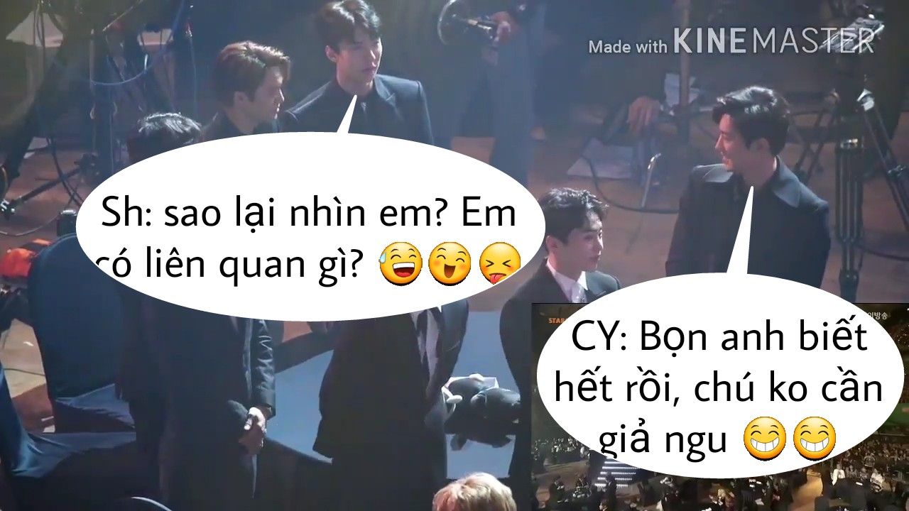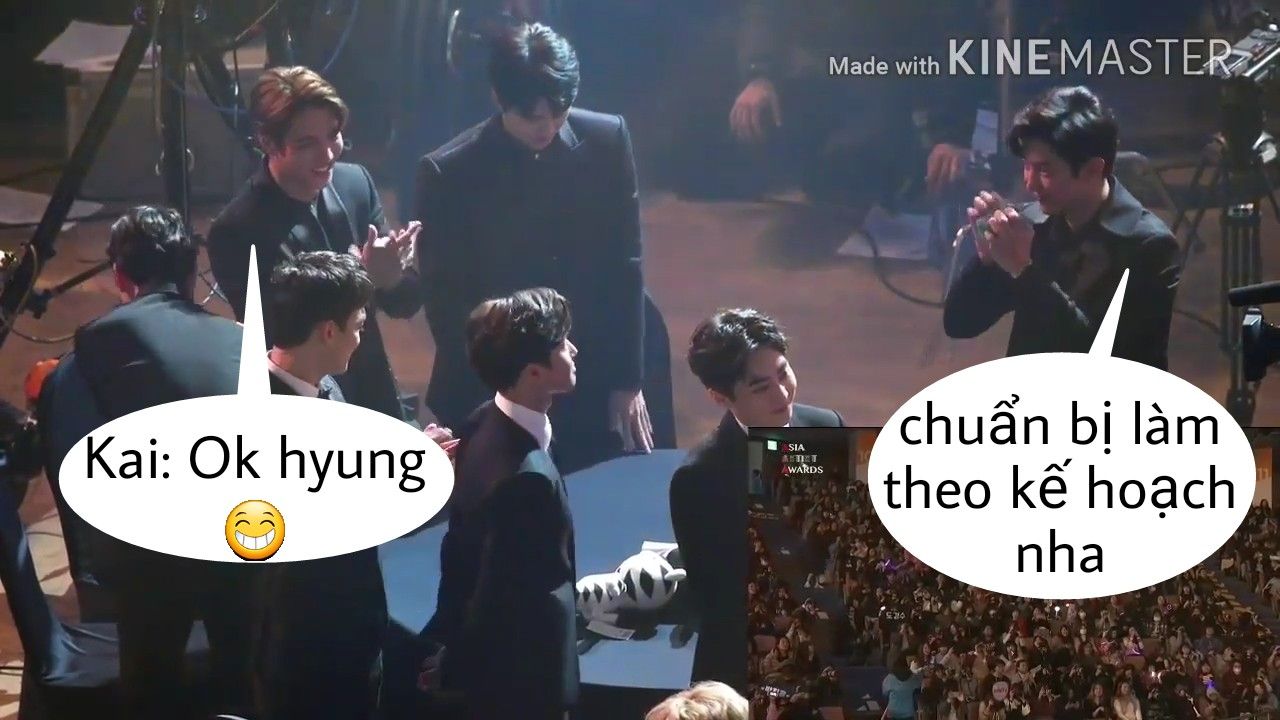 Đây là ngay sau khi D.O phát biểu xong. Chanyeol liền quay mặt nhìn Kai rồi 2 người cười gian với nhau , đang ủ mưu gì rồi 😂
