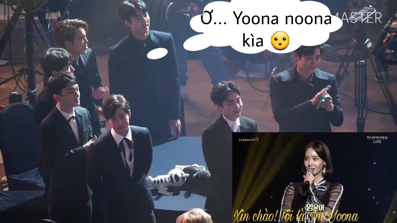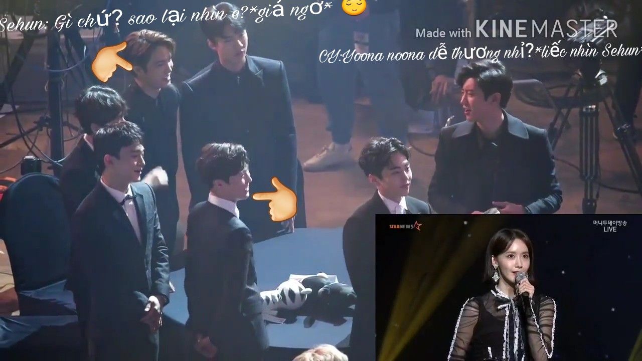 Khi Yoona phát biểu thì 3 người kia đều quay lại nhìn nhau rồi nhìn Sehun nói gì đó 😁😁