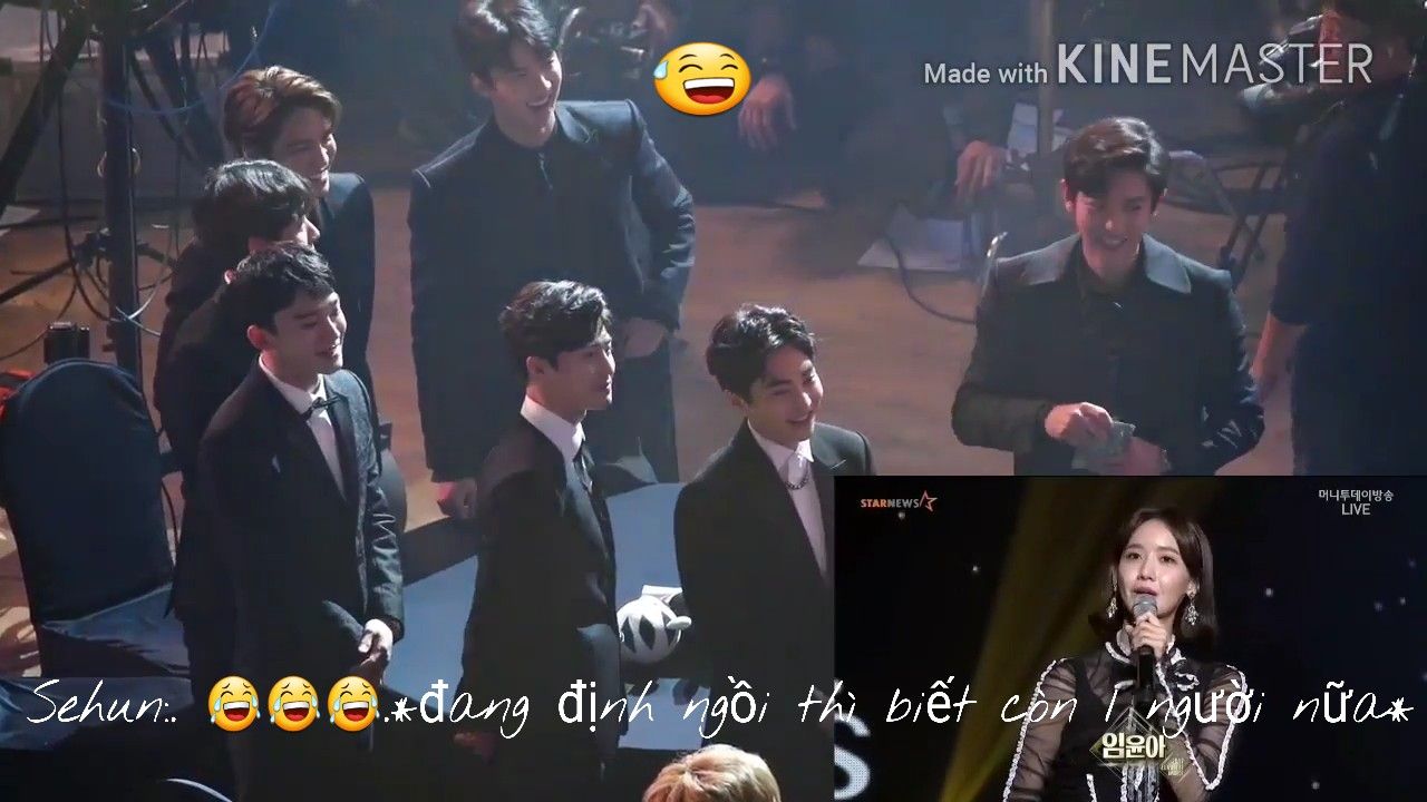 Nghe thấy tên Im Yoona cái đứng hình luôn. 😊😌😌😌. Đang cười tít mắt nghe tên ai đó 1 cái là thộn mặt luôn =))). Lúc này sehun đã bị rơi vào bẫy của Suho, Kai, Chanyeol mà không hề biết :v