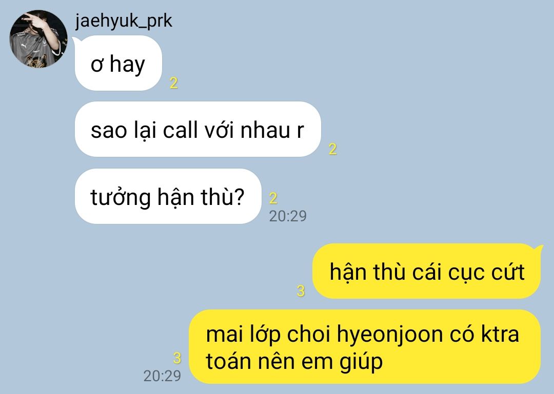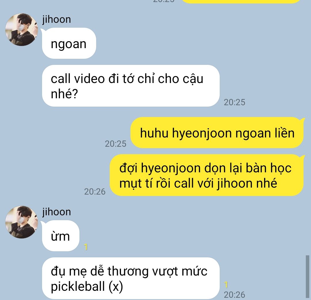 " bài này.. làm theo công thức này nhé, hyeonjoon ngẩng mặt xuống cho tớ nhìn mặt cậu được không? "