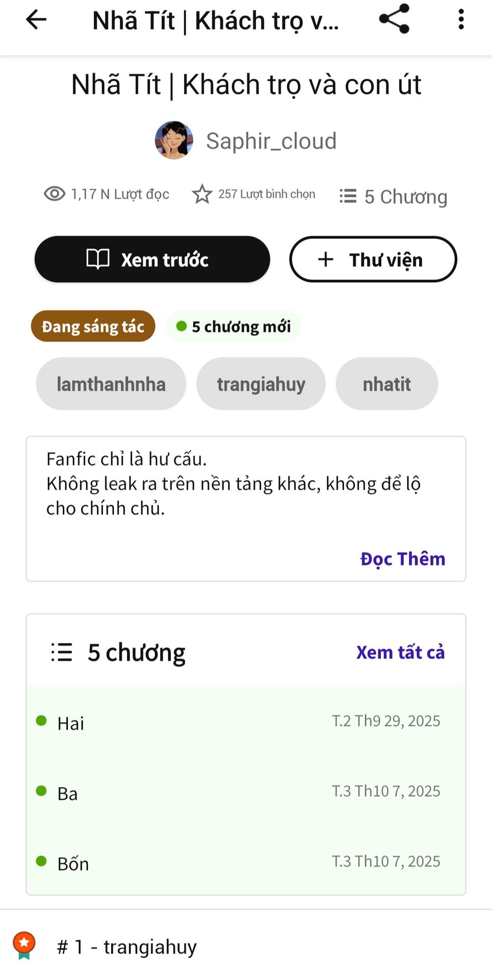 Cũng cảm ơn cả nhà đã đọc và nâng thành tích Khách trọ con út lên thế này nhó 💖