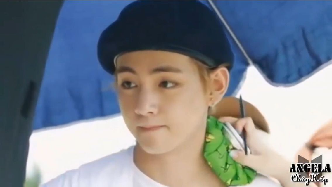 —V Hyung đang làm gì ở đây vậy?—Jungkook đột nhiên chạy đến khoác vai V.