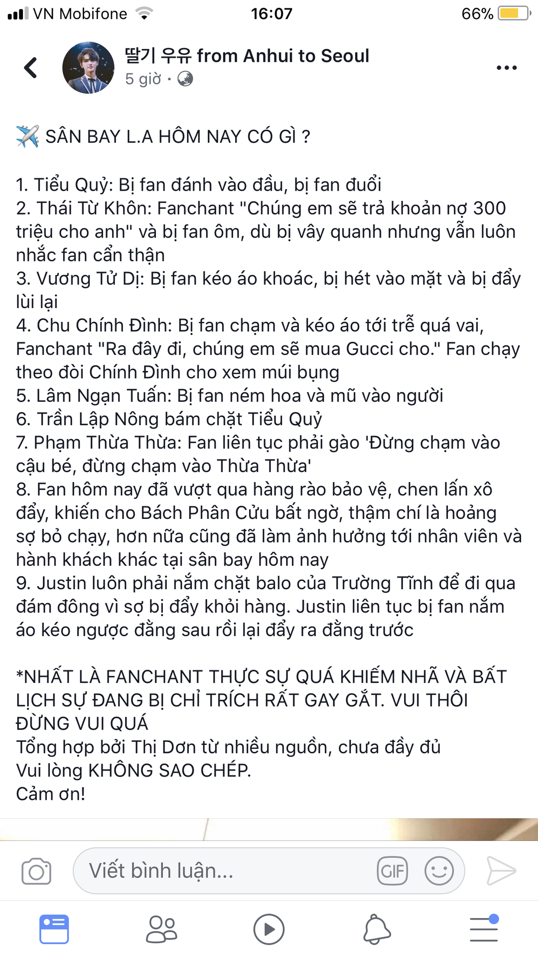 Mình không thể chấp nhận được việc này, fan tại đó thực sự không biết tôn trọng những idol khác trong group ngoài bias họ. Cuồng một người quá mức khiến họ tổn thương, thực sự mình không thể chấp nhận được.