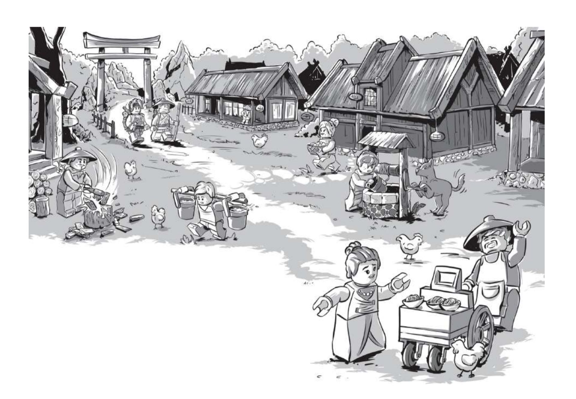 Cả hai anh em đến nơi đúng kịp lúc khi ngôi làng vừa bắt đầu các hoạt động nhộn nhịp thường nhật của nó. Đàn gà đang cặm cụi bới đất tìm mồi, lũ trẻ hối hả xách từng xô nước từ giếng lên và một người bán hàng vui vẻ đã sẵn sàng phục vụ những tô mì nóng hổi từ chiếc xe đẩy của mình.