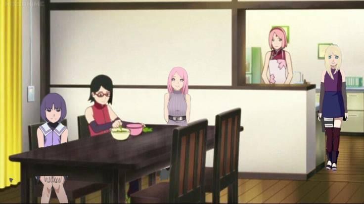 Sau khi ăn xong thì Sakura tiến hành rửa chén bát rồi dọn bữa ăn cho Sasuke vì cô biết Sasuke sẽ về . Còn Sarada , Memori , Iruno , Sumire tiến hành lên phòng ngủ của Sarada tiếp tục trò chuyện với nhau như bốn chị em thân thiện vậy . Memori cũng đỡ tranh giành với Sumire khi đã có Iruno chăm sóc cho Sumire rồi . Sarasa , Memori , Iruno tiếp tục nói chuyện trong khi Sumire tiếp tục nghiên cứu còn gian dở