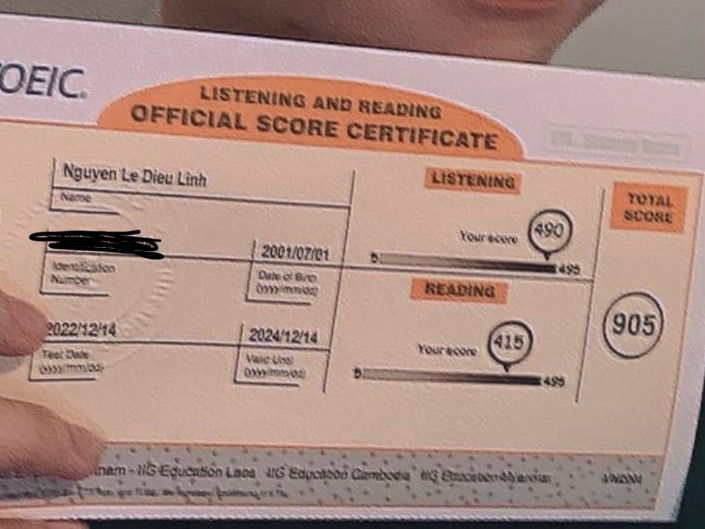 vì chap này có nhắc đến toeic nên tui cũm xin phép flex sương sương quả toeic 905 của tui, với điểm listening 490/495 ahihi :>
