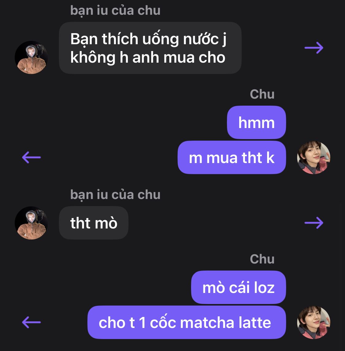 Vừa nói nó vừa nhìn hai đứa dấm dúi đằng kia vừa nháy mắt, rồi nó nắm cổ tay Juhoon kéo đi một mạch.Juhoon bị nắm lấy cổ tay định giật ra thì Martin đã kéo cậu đi được một đoạn ra khỏi chỗ đám đông đầy ánh đèn nhấp nháy.