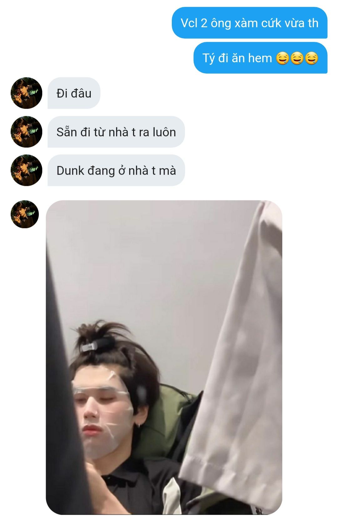 "Ơ giè, chào mẹ rồi bế bé bi mà đi thôi, mày thay đồ đi, tao thay tã bỉm với quần áo của Phuwin cho."