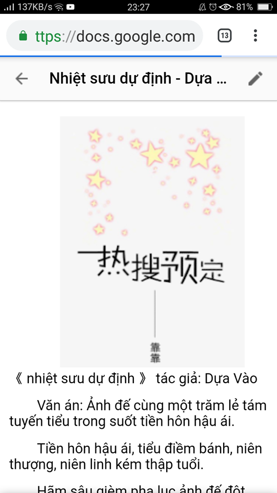 Vậy nên từ giờ mình chuyển qua đăng truyện tự cv trên GOOGLE ... TÀI LIỆU