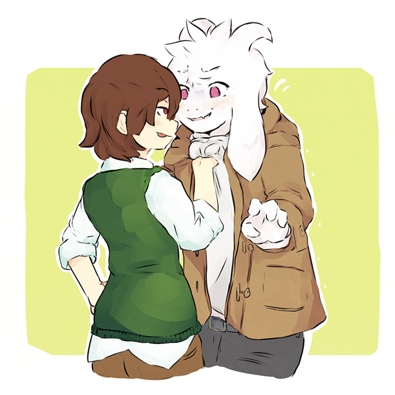 Theo mình thì, cặp này ship kiểu này là được nhất: Chara ghét cuộc sống của mình (do quá khứ có cái gì đó) nên đã rơi xuống Underground. Asriel tìm thấy Chara và đưa cô (họ) vào nhà. Do sự lạc quan và tốt bụng của Asriel nên Chara đã trở nên yêu đời hơn. Quá hợp luôn, đúng không?