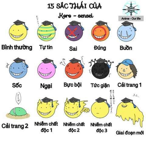 "Nyu fu fu fu~ nào các em, đã vào tiết học tiếp theo rồi. Mau ổn định chỗ ngồi thôi." - Koro-sensei bước vào lớp, trên tay là một quyển sách và sổ điểm.