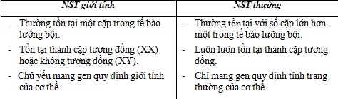 Câu 18: So sánh NST thường với NST giới tính.