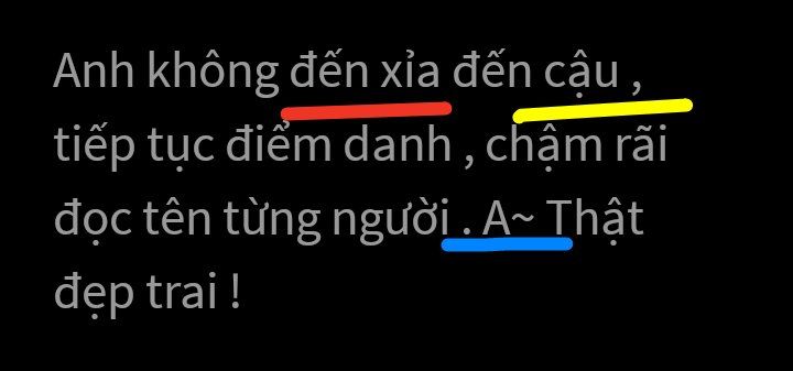 " Anh không thèm đếm xỉa tới cậu ( , ) mà tiếp tục điểm danh, chậm rãi đọc tên từng người. "