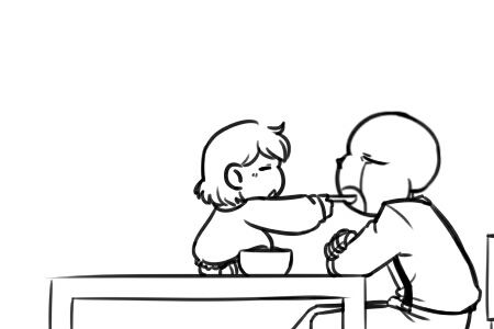 Chau mày đưa tay ôm lấy đứa trẻ lại, G!Sans bắt đầu trở nên xấu tính:
