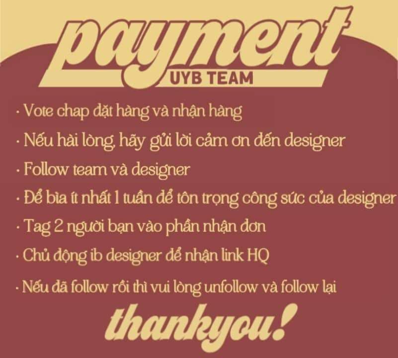 Cảm ơn các bạn đã đặt hàng ở team, không hài lòng ở đâu hãy liên hệ với Designer để được sửa chữa nhé !